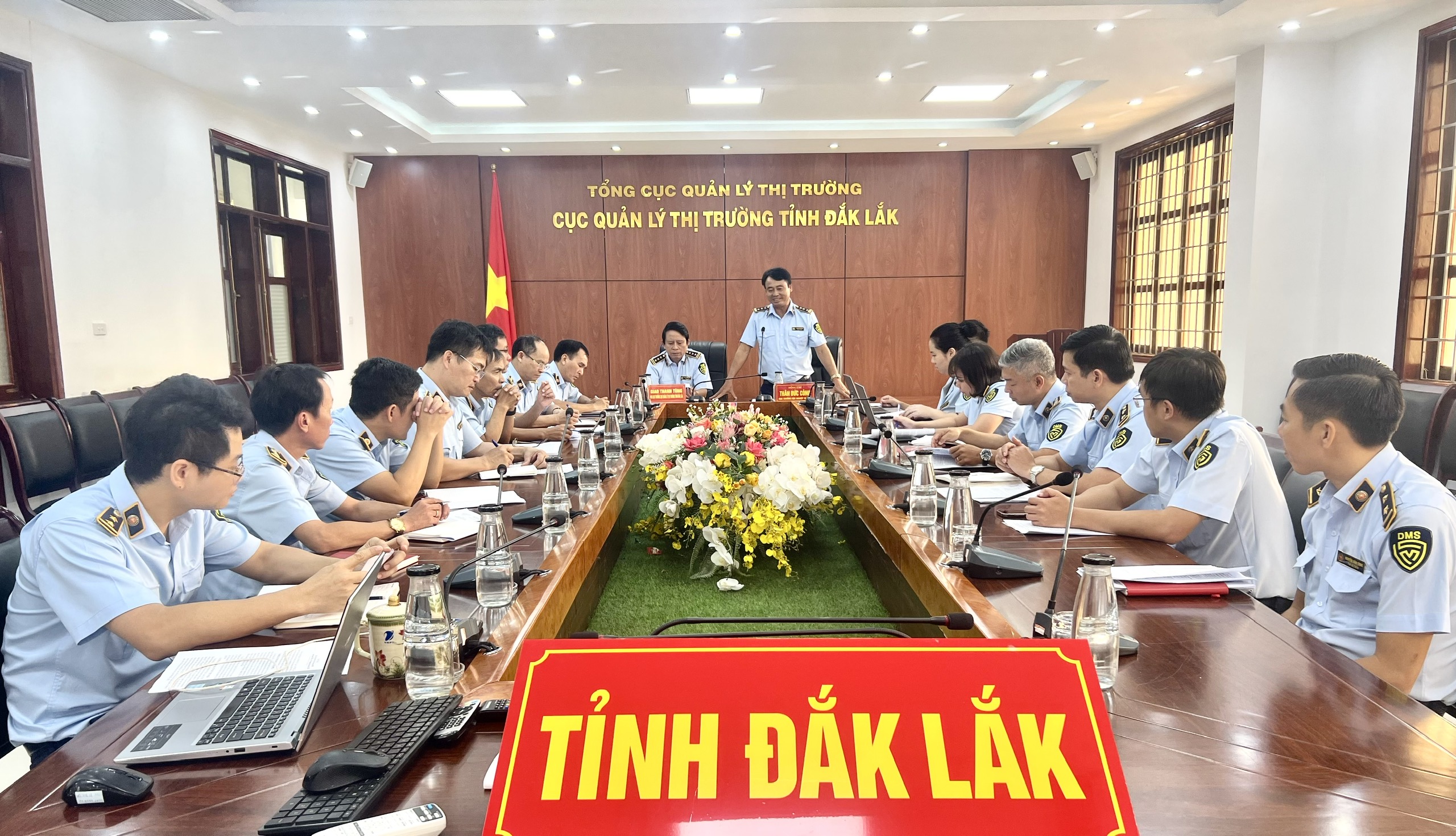 Ngày 17/11/2022, Đoàn công tác Cục Nghiệp vụ Quản lý thị trường do đồng chí Thân Đức Công - Cục trưởng làm Trưởng Đoàn đã có buổi làm việc với Cục Quản lý thị trường tỉnh Đắk Lắk. Nội dung làm việc: kiểm tra đánh giá tình hình triển khai Quyết định số 888/QĐ-TCQLTT ngày 23/3/2022 của Tổng cục Quản lý thị trường về phê duyệt Kế hoạch đấu tranh, phòng chống hàng giả, hàng không rõ nguồn gốc xuất xứ và hàng hóa xâm phạm quyền sở hữu trí tuệ giai đoạn 2021 - 2025 (gọi tắt là Kế hoạch 888) tại tỉnh Đắk Lắk.