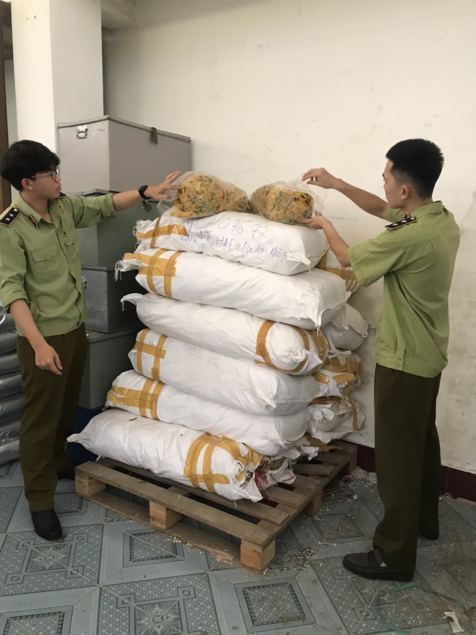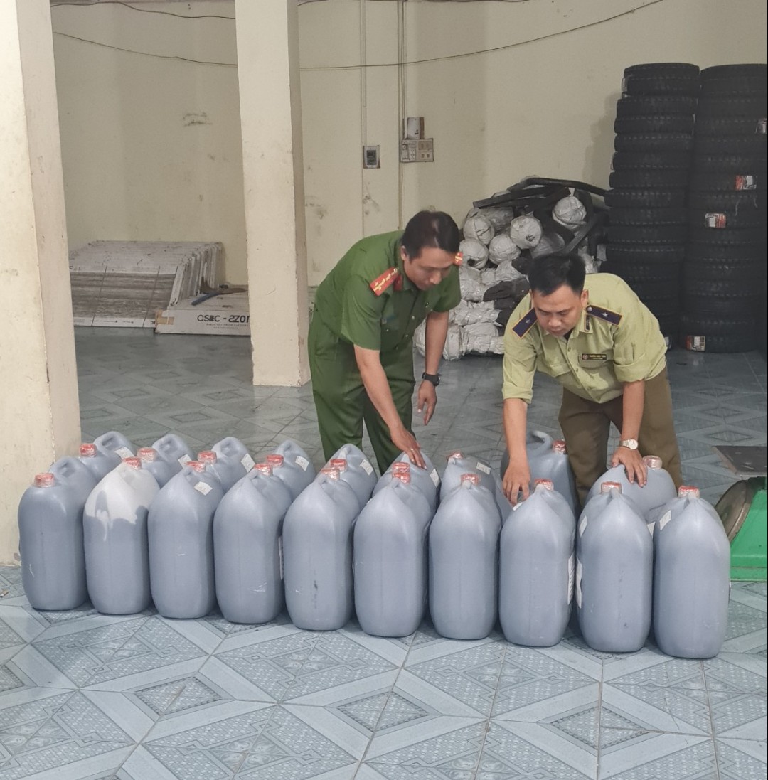 Đoàn kiểm tra tạm giữ 600 kg hạt nhựa (nhãn ghi bằng tiếng nước ngoài); 29 thùng nhớt làm mát động cơ (made in USA); 1.610 kg vải thun do Việt Nam sản xuất và 330kg khô gà không rõ nguồn gốc xuất xứ.