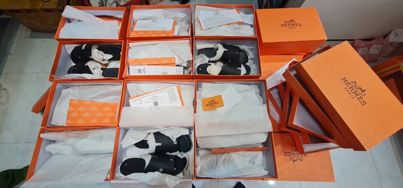 Đội QLTT số 5, Cục QLTT Phú Yên vừa tạm giữ 120 đôi dép có dấu hiệu giả mạo nhãn hiệu Hermès
