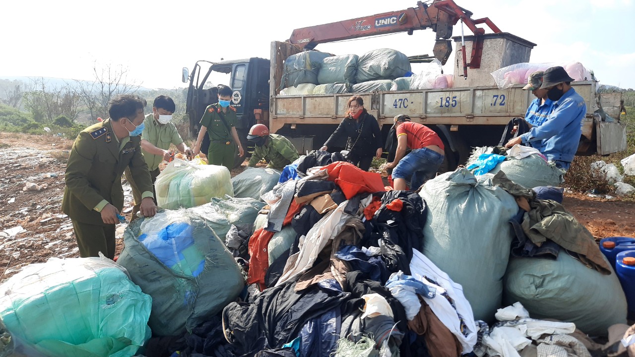 Đắk Lắk: 3,5 tấn quần áo và giày đã qua sử dụng nhập khẩu bị tiêu hủy