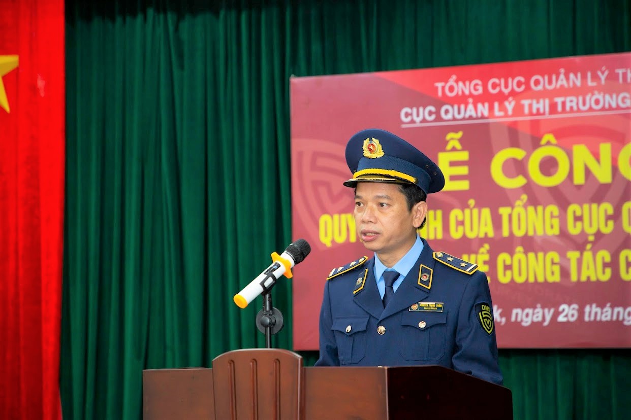 Tại buổi lễ, thừa ủy quyền của Tổng cục trưởng Tổng cục Quản lý thị trường, đồng chí Mai Mạnh Toàn - Bí thư Đảng ủy, Cục trưởng Cục Quản lý thị trường đã trao Quyết định bổ nhiệm ông Nguyễn Trong Tuấn giữ chức vụ Phó Trưởng phòng Nghiệp vụ - Tổng hợp; ông Nguyễn Thu Đông giữ chức vụ Đội Quản lý thị trường số 2. Hiện nay, Đội Quản lý thị trường số 2 - Cục Quản lý thị trường tỉnh Đắk Lắk đang quản lý địa bàn các huyện Cư Kuin, Krông Ana, Krông Bông và Lắk. Phòng Nghiệp vụ - Tổng hợp thực hiện chức năng tham mưu giúp Cục trưởng thực hiện công tác quản lý nhà nước và tổ chức thực thi pháp luật về phòng, chống, xử lý các hành vi kinh doanh hàng hóa nhập lậu, sản xuất, buôn bán hàng giả, hàng cấm, hàng hóa không rõ nguồn gốc, xuất xứ; hành vi xâm phạm quyền sở hữu trí tuệ, vi phạm pháp luật về chất lượng, đo lường, an toàn thực phẩm, bảo vệ quyền lợi người tiêu dùng và các hành vi gian lận thương mại khác theo quy định pháp luật trên địa bàn tỉnh Đắk Lắk; tổng hợp, báo cáo kết quả thi hành pháp luật xử lý vi phạm hành chính của Cục theo quy định.