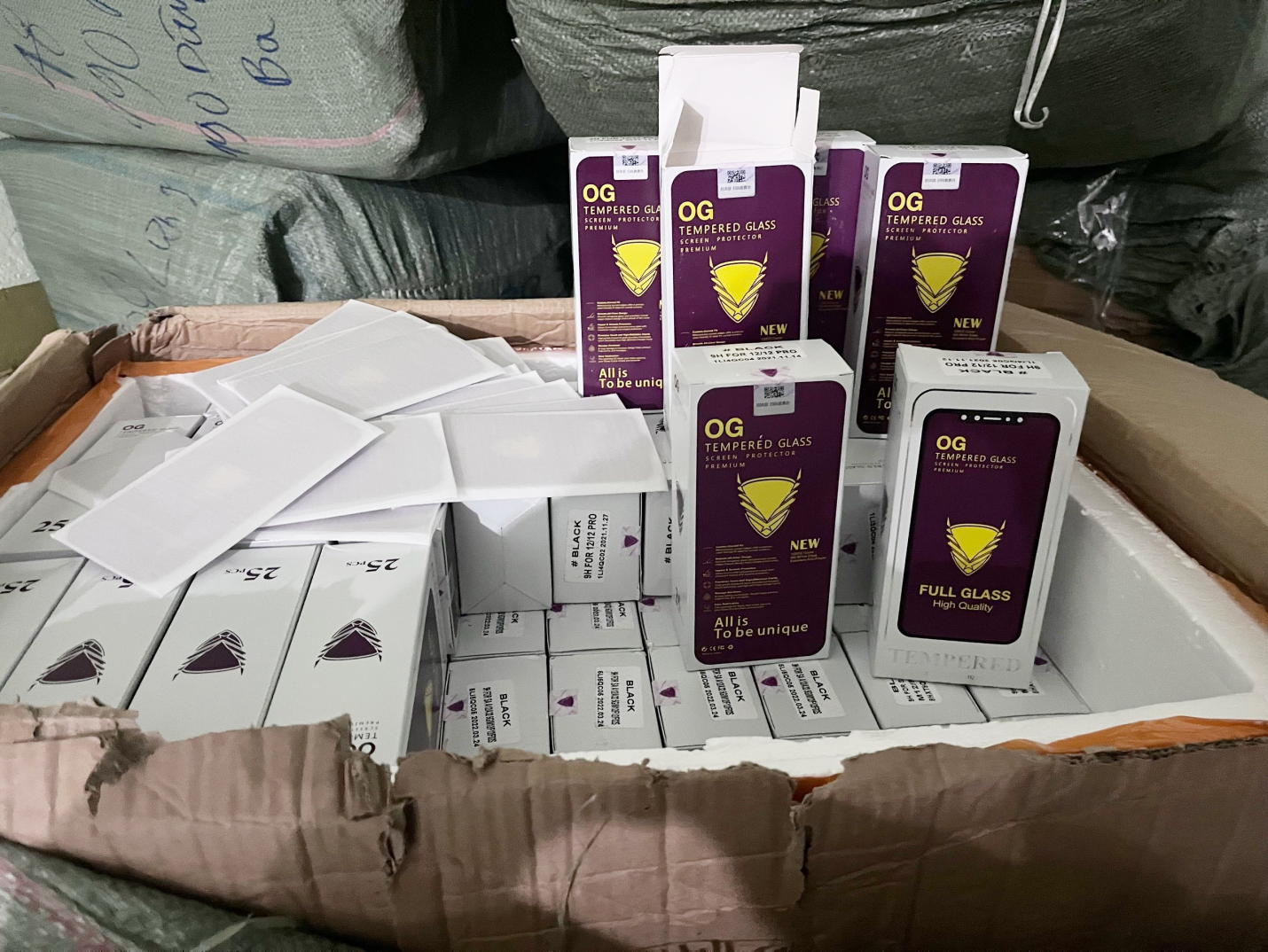 Đội QLTT số 1- Cục QLTT Phú Yên tạm giữ lượng lớn phụ kiện điện thoại các loại và miếng dán màn hình điện thoại không có hóa đơn, chứng từ do nước ngoài sản xuất