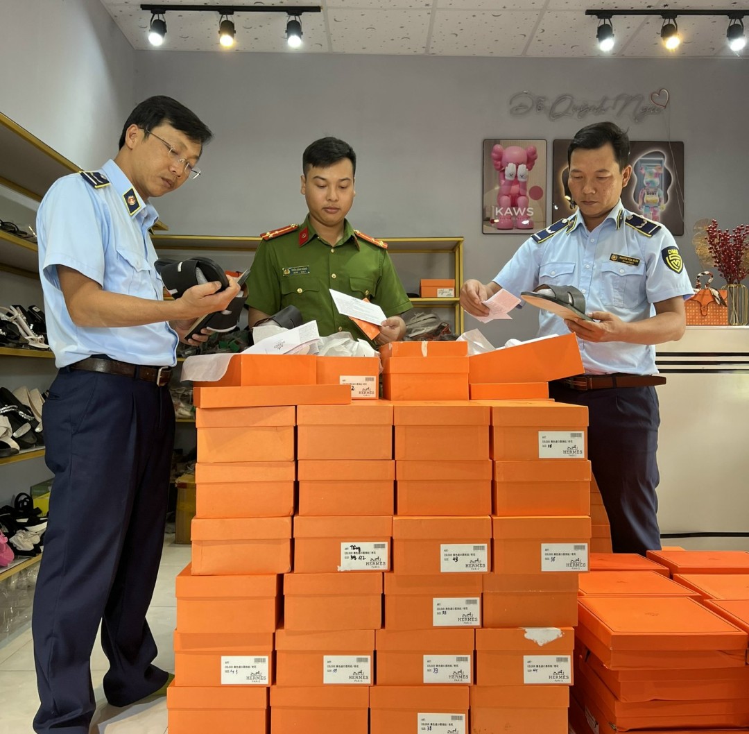 Đội QLTT số 5, Cục QLTT Phú Yên vừa tạm giữ 120 đôi dép có dấu hiệu giả mạo nhãn hiệu Hermès