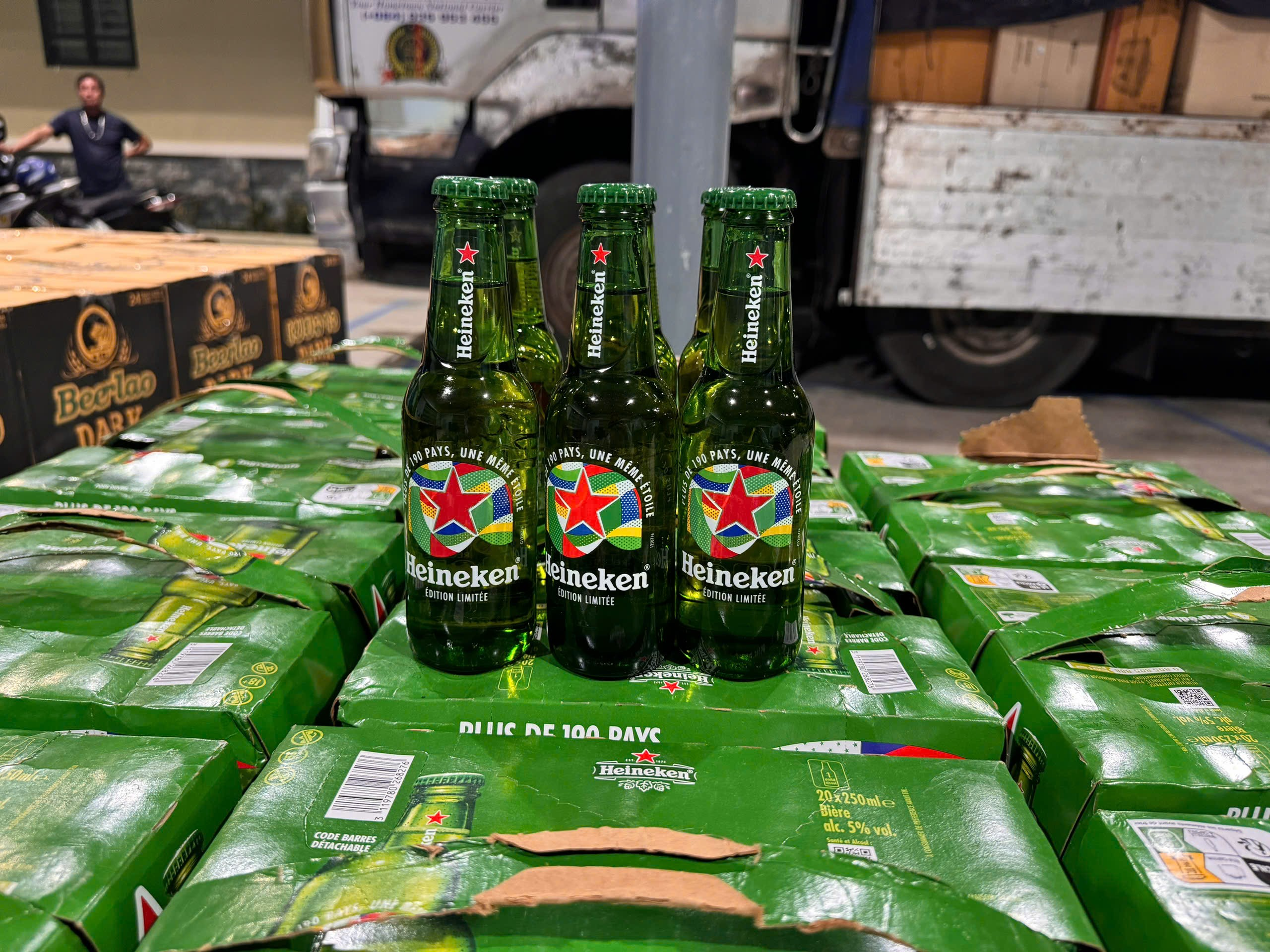 Kết quả kiểm tra phát hiện trên xe vận chuyển, gồm: 1.400 chai bia hiệu Heineken, loại 250ml; 1.680 chai bia hiệu Beerlao – DARK LAGER, loại 330ml; 720 chai bia hiệu Beerlao -WHITE BEER; 480 chai bia hiệu Leffe, loại 330ml do nước ngoài sản xuất, không có hóa đơn, chứng từ hợp pháp kèm theo. Tổng trị giá hàng hóa ước tính trên 900.000.000 đồng.