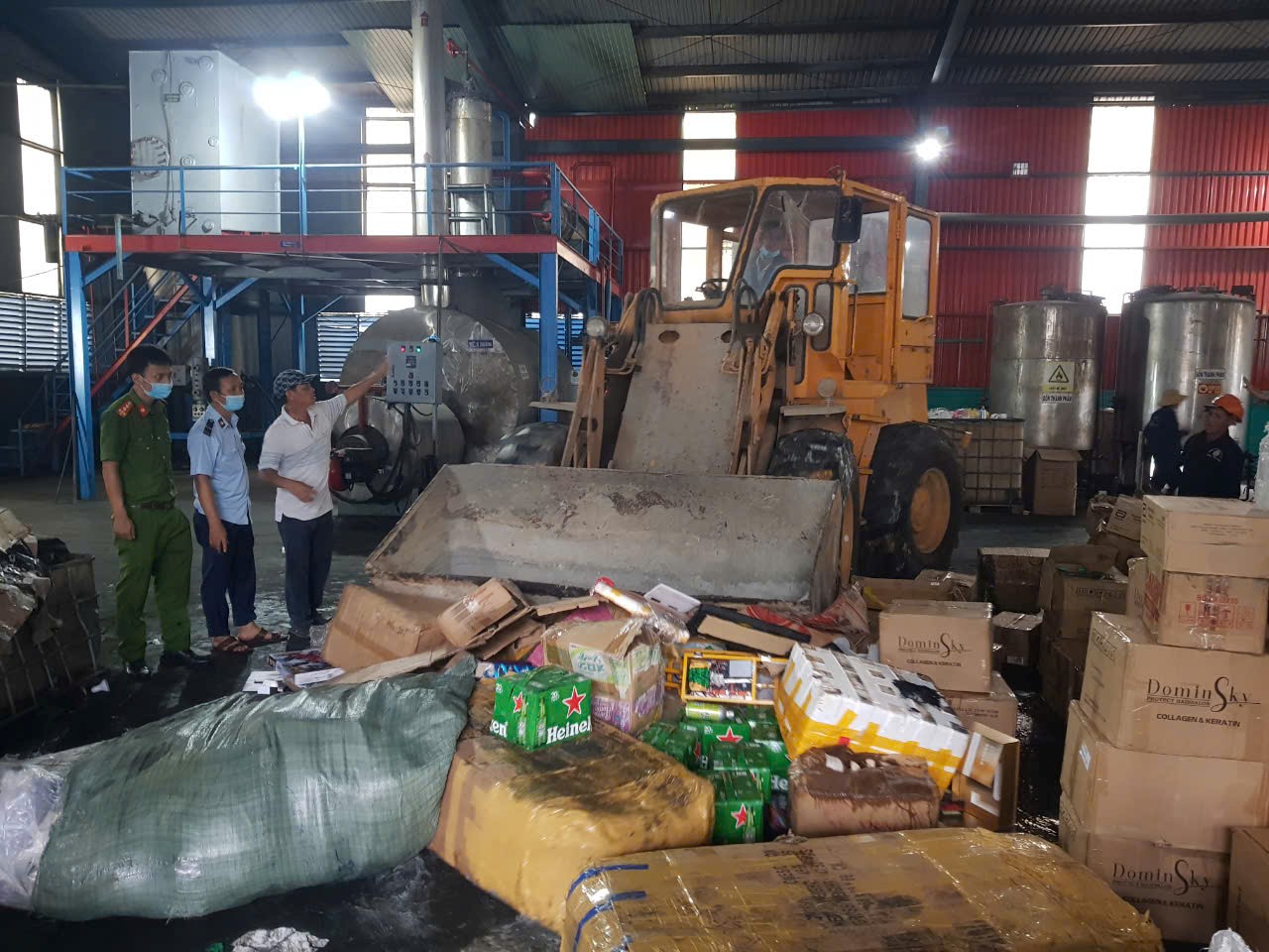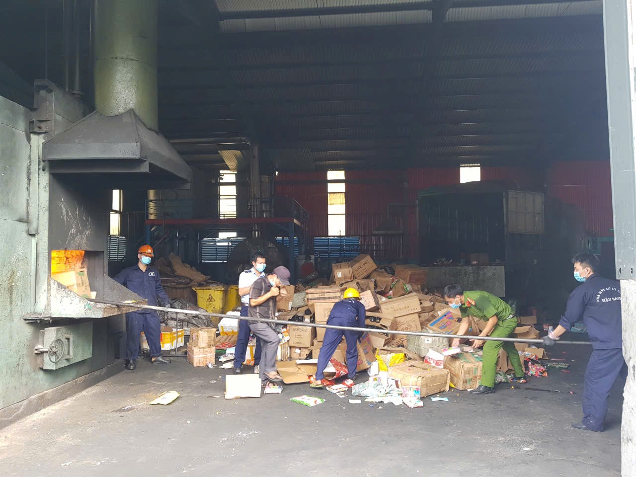 Tiếp đó ngày 04/9/2024, tại Nhà máy tái chế và xử lý chất thải nguy hại (xã Cát Nhơn, huyện Phù Cát, tỉnh Bình Định) - Công ty TNHH Thương mại và Môi trường Hậu Sanh (đơn vị được thuê thực hiện việc tiêu hủy) đã tiến hành tiêu hủy tất cả số hàng hóa là tang vật vi phạm hành chính bị tịch thu trên đúng quy trình, quy định, dưới sự giám sát của Hội đồng kiểm kê và tiêu hủy, tổng giá trị hàng hóa trên 1,781 tỷ đồng. Hàng hóa tiêu hủy gồm 175 mặt hàng hóa là những hàng hóa giả mạo nhãn hiệu, hàng không rõ nguồn gốc xuất xứ, không dán tem, không đảm bảo an toàn thực phẩm theo quy định, hàng nhập lậu, không có số công bố sản phẩm, không đảm bảo chất lượng, không đủ điều kiện lưu hành trên thị trường đã bị tịch thu.