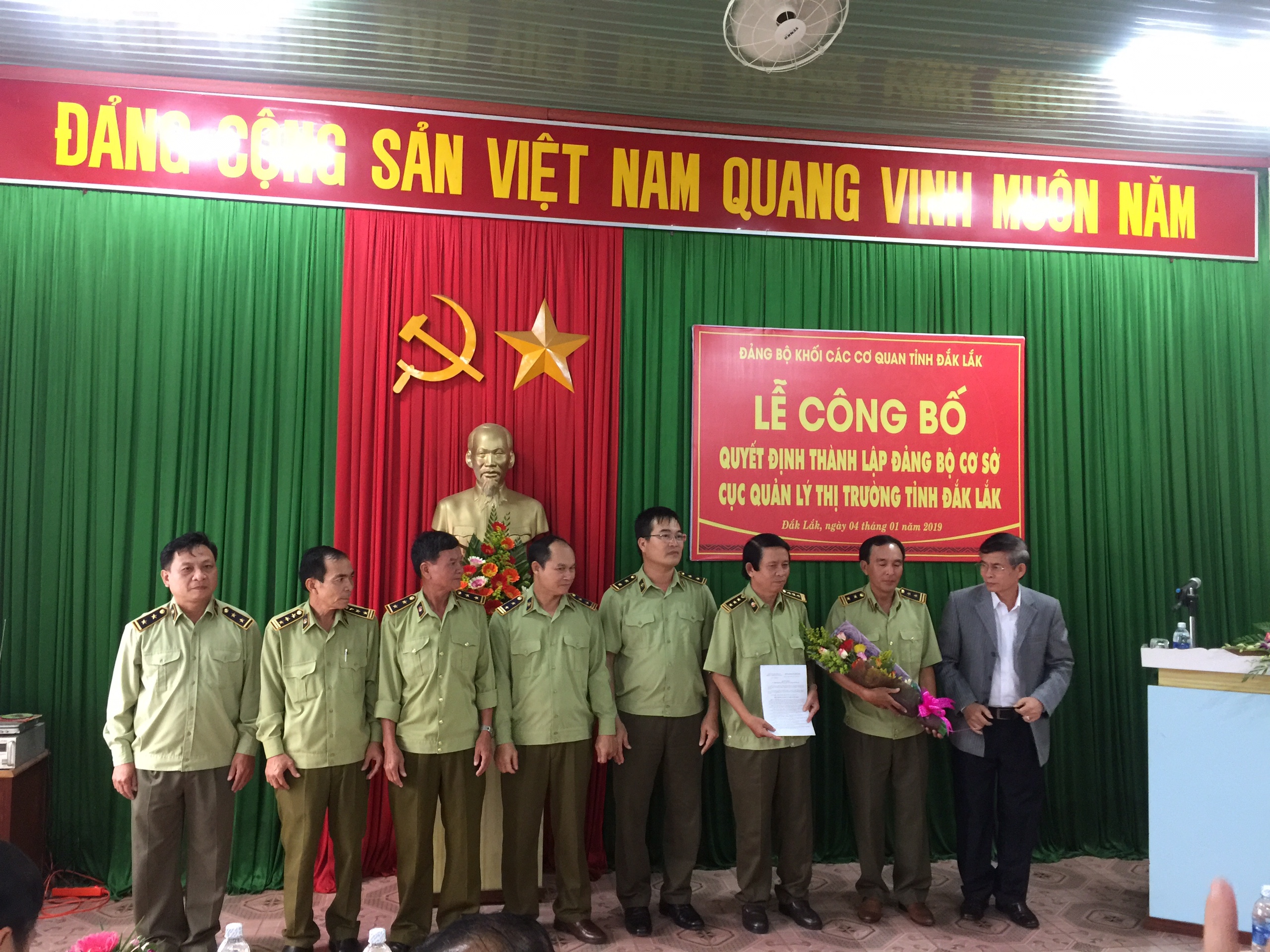 Ngày 04/01/2019, tại Trụ sở Cục Quản lý thị trường tỉnh Đắk Lắk đã diễn ra Lễ công bố Quyết định thành lập Đảng bộ và ra mắt Ban chấp hành Đảng bộ Cục Quản lý thị trường tỉnh Đắk Lắk.