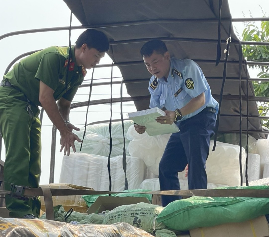 Đoàn kiểm tra phát hiện trên xe vận chuyển hàng hóa gồm: 1.556 phụ tùng xe máy các loại; 1.000 lưỡi cưa kim loại hai mặt. Hai mặt hàng hóa trên do nước ngoài sản xuất nhưng không có nhãn phụ bằng tiếng Việt Nam, tại thời điểm kiểm tra lái xe không xuất trình được hóa đơn, chứng từ chứng minh tính hợp pháp của hàng hóa. Theo quy định của pháp luật, Đoàn kiểm tra đã lập biên bản tạm giữ toàn bộ số hàng hóa trên để tiếp tục thẩm tra, xác minh xử lý theo quy định.