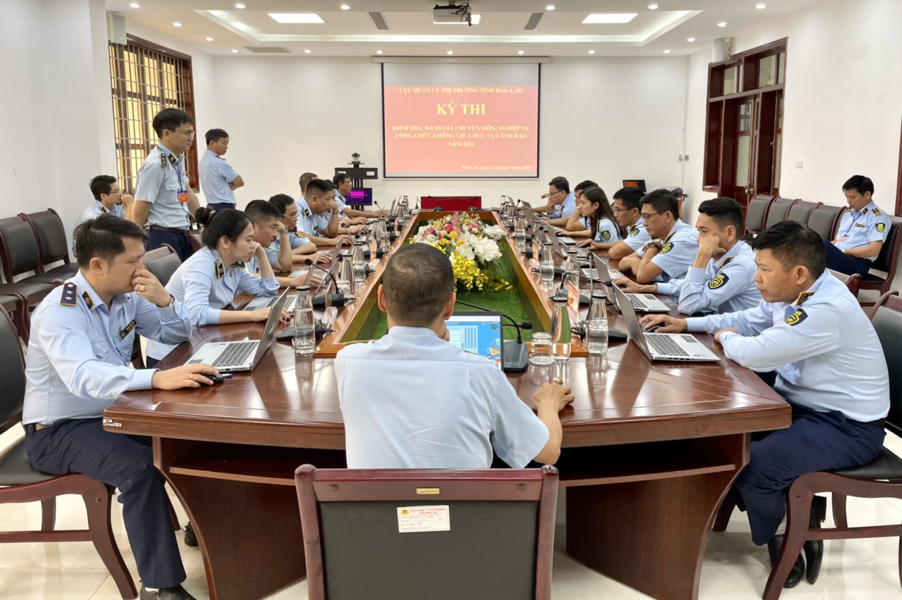 Năm 2022, Cục Quản lý thị trường tỉnh Đắk Lắk có 34 công chức không giữ chức vụ tham gia kiểm tra, đánh giá chuyên môn, nghiệp vụ, được chia làm 02 ca. Công tác kiểm tra được diễn ra nghiêm túc, khách quan, minh bạch, tuân thủ đúng Quy chế sát hạch dưới sự giám sát chặt chẽ của Ban Giám sát nội bộ Cục Quản lý thị trường (do đồng chí Phó Cục trưởng làm Trưởng ban).