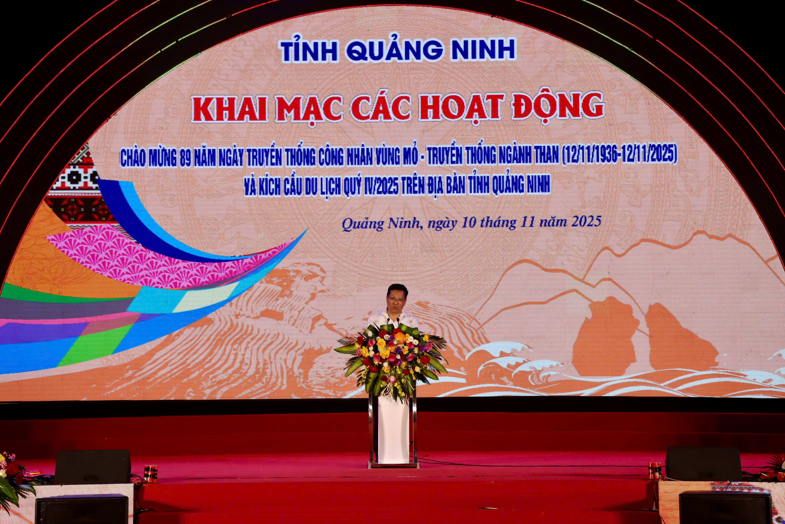 Tối 10/11, tại Cung Quy hoạch, Hội chợ và Triển lãm tỉnh Quảng Ninh, đã diễn ra Lễ khai mạc các hoạt động chào mừng kỷ niệm 89 năm Ngày Truyền thống Công nhân vùng Mỏ – Truyền thống ngành Than (12/11/1936 - 12/11/2025) và chương trình kích cầu du lịch Quý IV/2025.