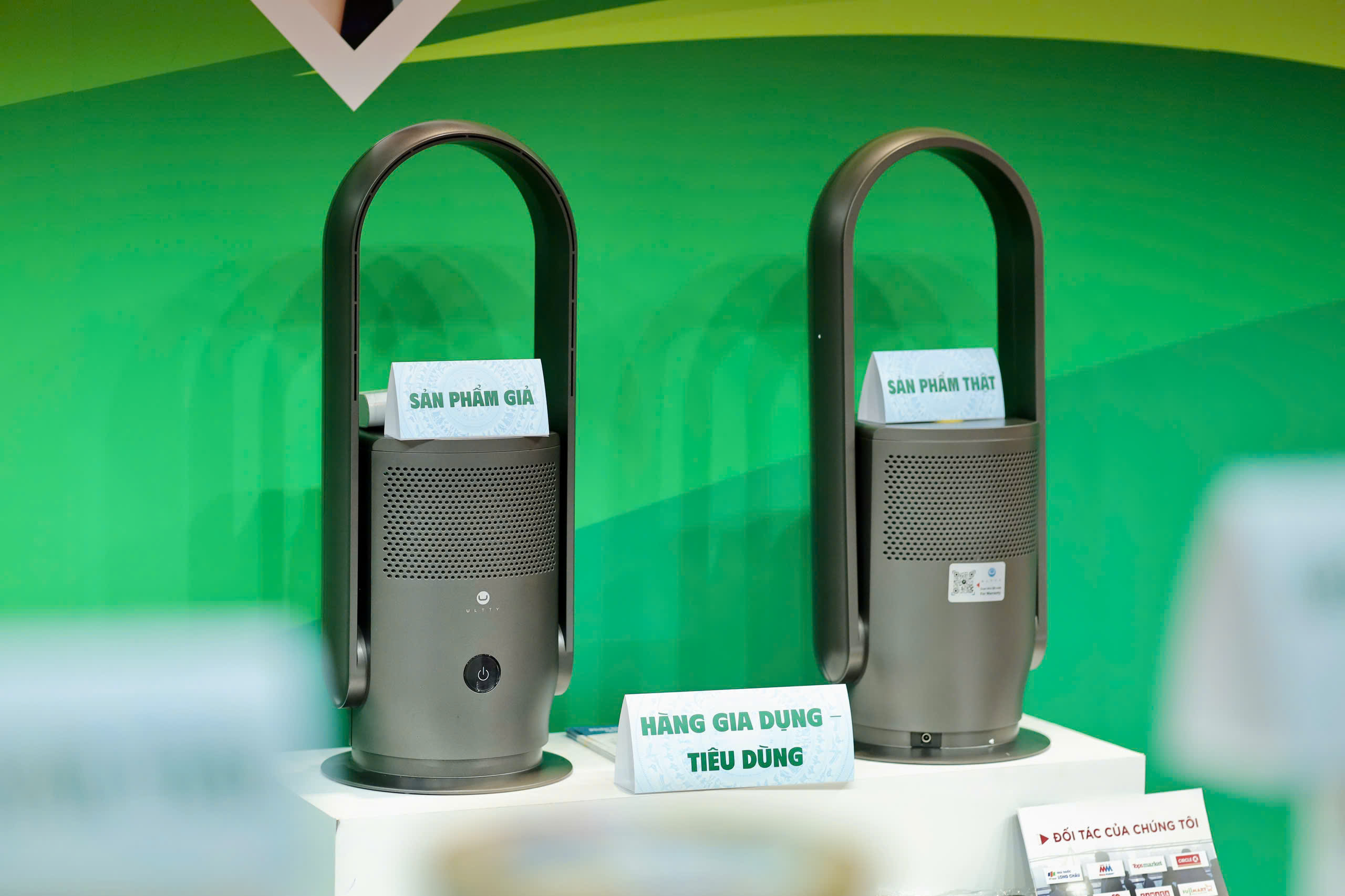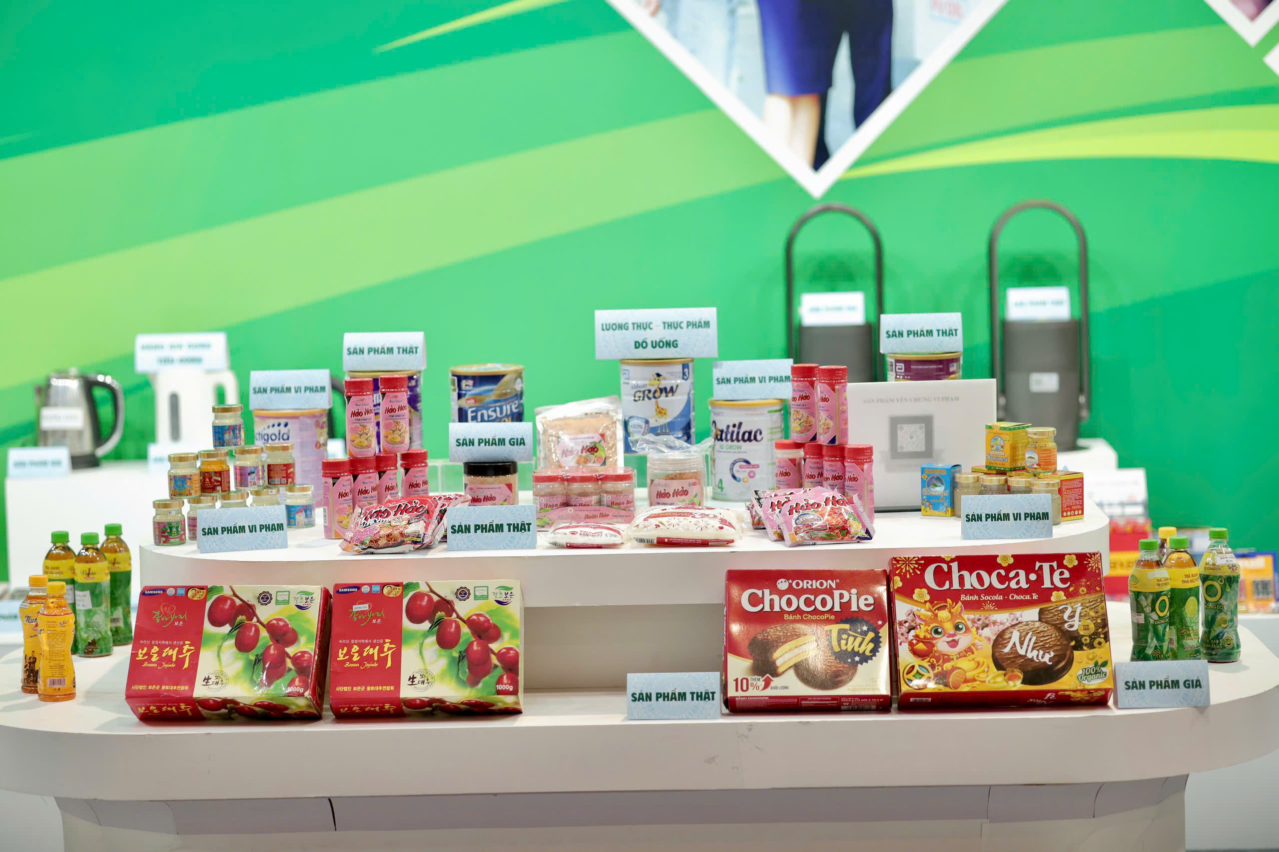 Không gian được thiết kế trực quan, sinh động, trưng bày các mẫu sản phẩm thật và giả song song để người dân dễ dàng so sánh, quan sát. Cán bộ của Cục trực tiếp giới thiệu tem chống giả, mã QR truy xuất nguồn gốc, các đặc điểm nhận diện sản phẩm chính hãng, đồng thời tuyên truyền về tác hại của hàng giả, hàng kém chất lượng đối với sức khỏe, kinh tế và uy tín thương hiệu Việt.